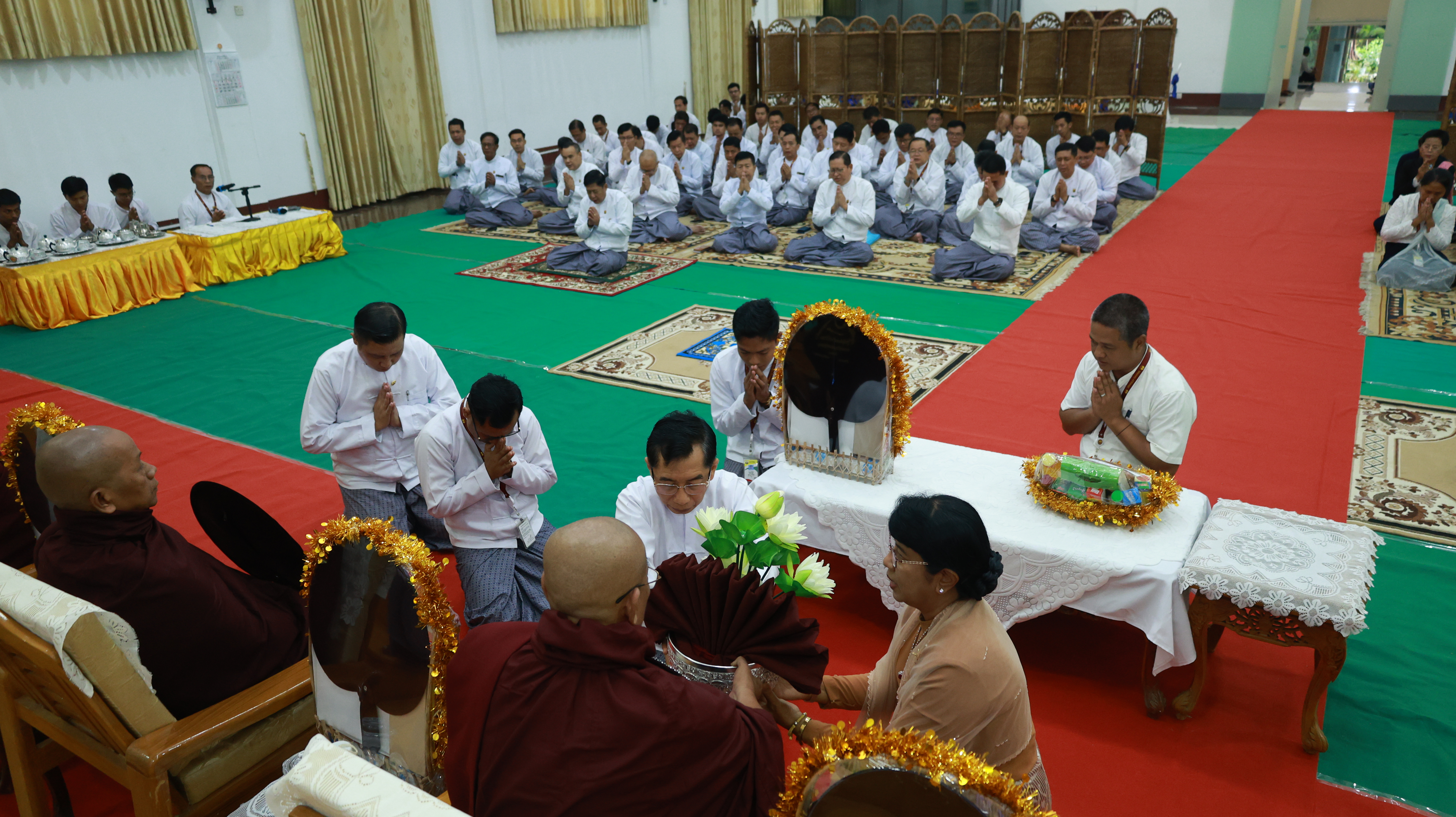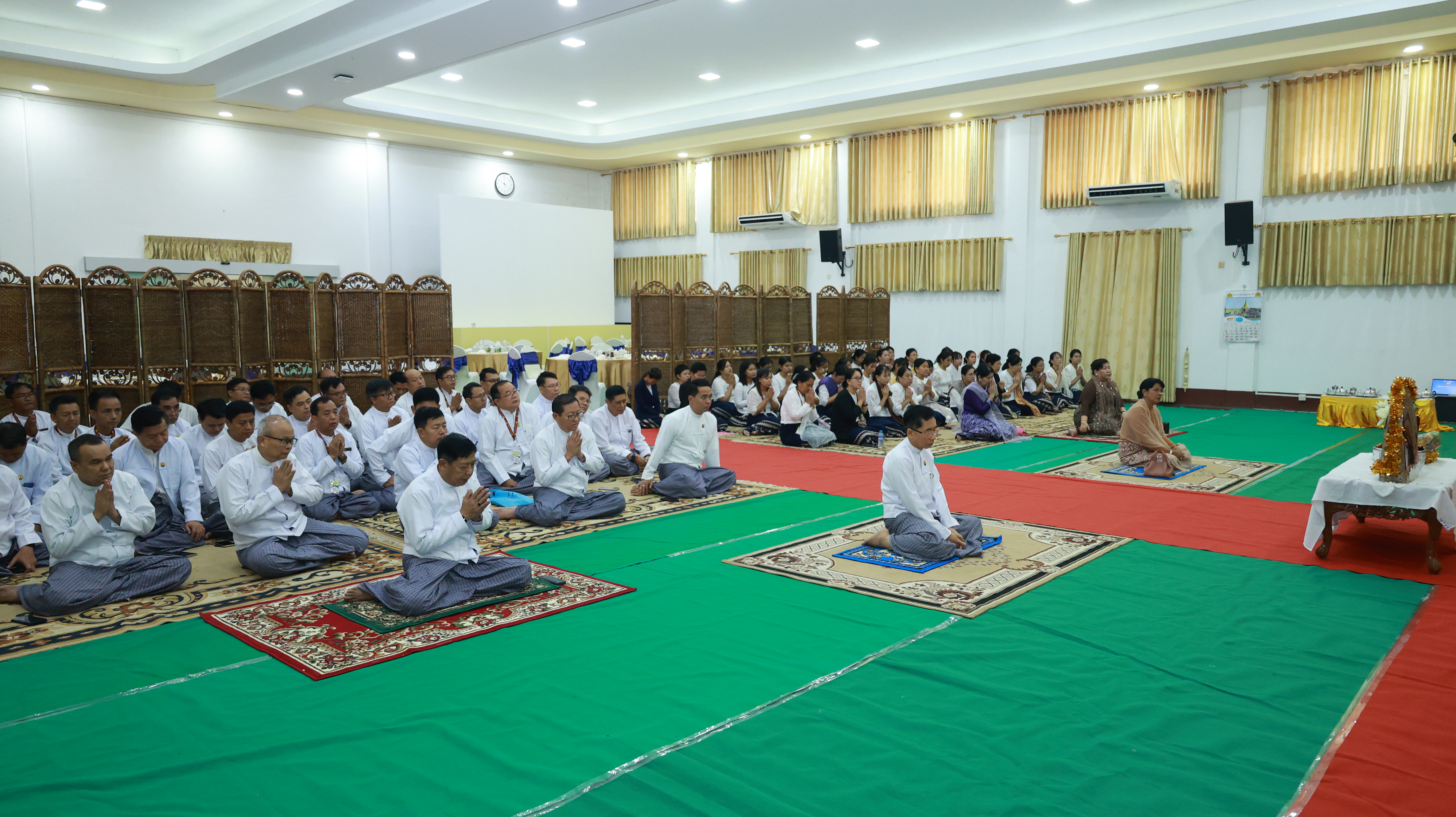 ပထမဦးစွာ ပြည်ထောင်စုဝန်ကြီး၊ ဒုတိယဝန်ကြီးနှင့် တက်ရောက်လာသောဝန်ထမ်းမိသားစု များမှ နမောတဿ(၃) ကြိမ်ရွတ်ဆိုကာ ငါးပါးသီလခံယူဆောက်တည်ကြပြီး မဟာဝိသုတာရာမ ဈေးကုန်းကျောင်းတိုက်မှ ပဓာနနာယက၊ အဂ္ဂမဟာဂန္ထဝါစကပဏ္ဍိတ ဘဒ္ဒန္တစန္ဒောဘာသနှင့်ပင့်ဖိတ် ထားသော သံဃာတော် (၉) ပါးမှ ရွတ်ပွားချီးမြှင့်တော်မူသည့် ပရိတ်တရားတော်ကို နာယူကြည်ညို ကြပါသည်။