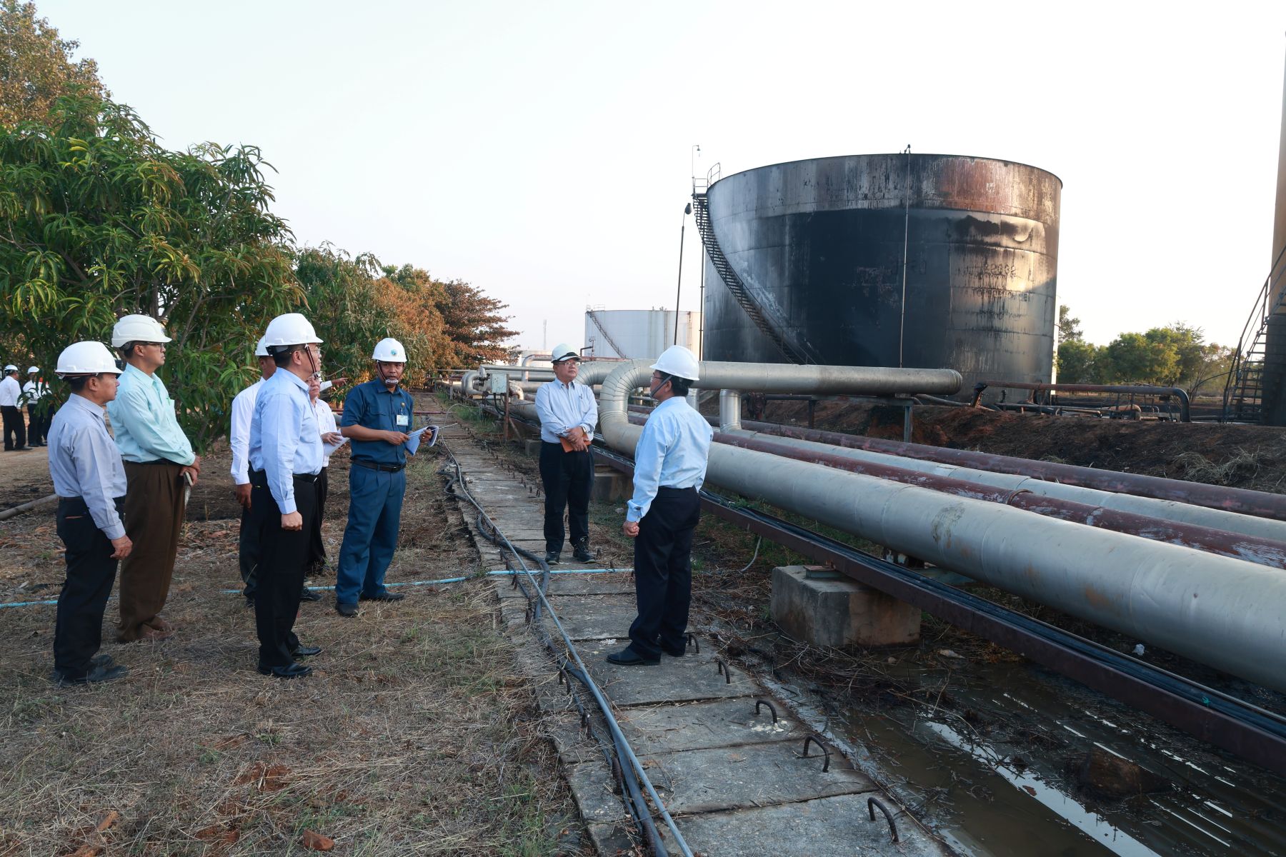 မီးလောင်ကျွမ်းမှုဖြစ်စဉ် ဖြစ်ပွားခဲ့သည့် ရေနံစိမ်းလက်ခံသိုလှောင်ကန် အခြေအနေများအား စက်ရုံမှူးမှ တင်ပြခဲ့ရာ သိုလှောင်ကန်နံရံများသာ မီလောင်ကျွမ်းခဲ့ပြီး သံကန်အတွင်း သိုလှောင်ထားသည့် ရေနံစိမ်းများ ပျက်စီးဆုံးရှုံးမှု မရှိပါကြောင်း၊ လက်ရှိမီးလောင်မှု ဖြစ်ပွားခဲ့သည့် သိုလှောင်ကန်နှစ်ကန်အား အသုံးမပြုဘဲ အခြားရေနံစိမ်းသိုလှောင်ကန် များအား အသုံးပြုပြီး ထုတ်လုပ်ခြင်း လုပ်ငန်းများ ဆောင်ရွက်သွားမည် ဖြစ်ပါကြောင်း၊ ပြင်ပရှိဆက်သွယ်ထားသည့် ပိုက်လိုင်းအနည်းငယ်သာပျက်စီးသွားပြီး ပိုက်လိုင်းအတွင်းရှိ ပိုက်လိုင်းကျန်ရေနံစိမ်း ခန့်မှန်းဂါလံ ၃၅၀ ခန့်သာ ဆုံးရှုံးခဲ့ပါကြောင်း၊ ပြင်ပရှိပိုက်လိုင်းများ ပျက်စီးမှုများကိုလည်း အမြန်ဆုံးပြုပြင် ဆောင်ရွက်နိုင်ရေး စီမံဆောင်ရွက်လျက် ရှိပါကြောင်း ရှင်းလင်းတင်ပြခဲ့ပါသည်။